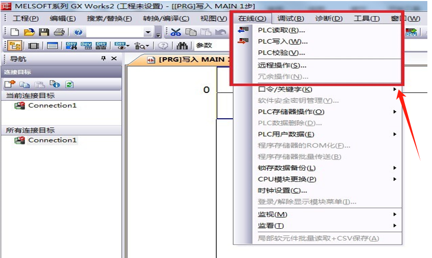 5. 随后即可“在线”选项栏中,进行PLC的读取、写入和监视等操作。