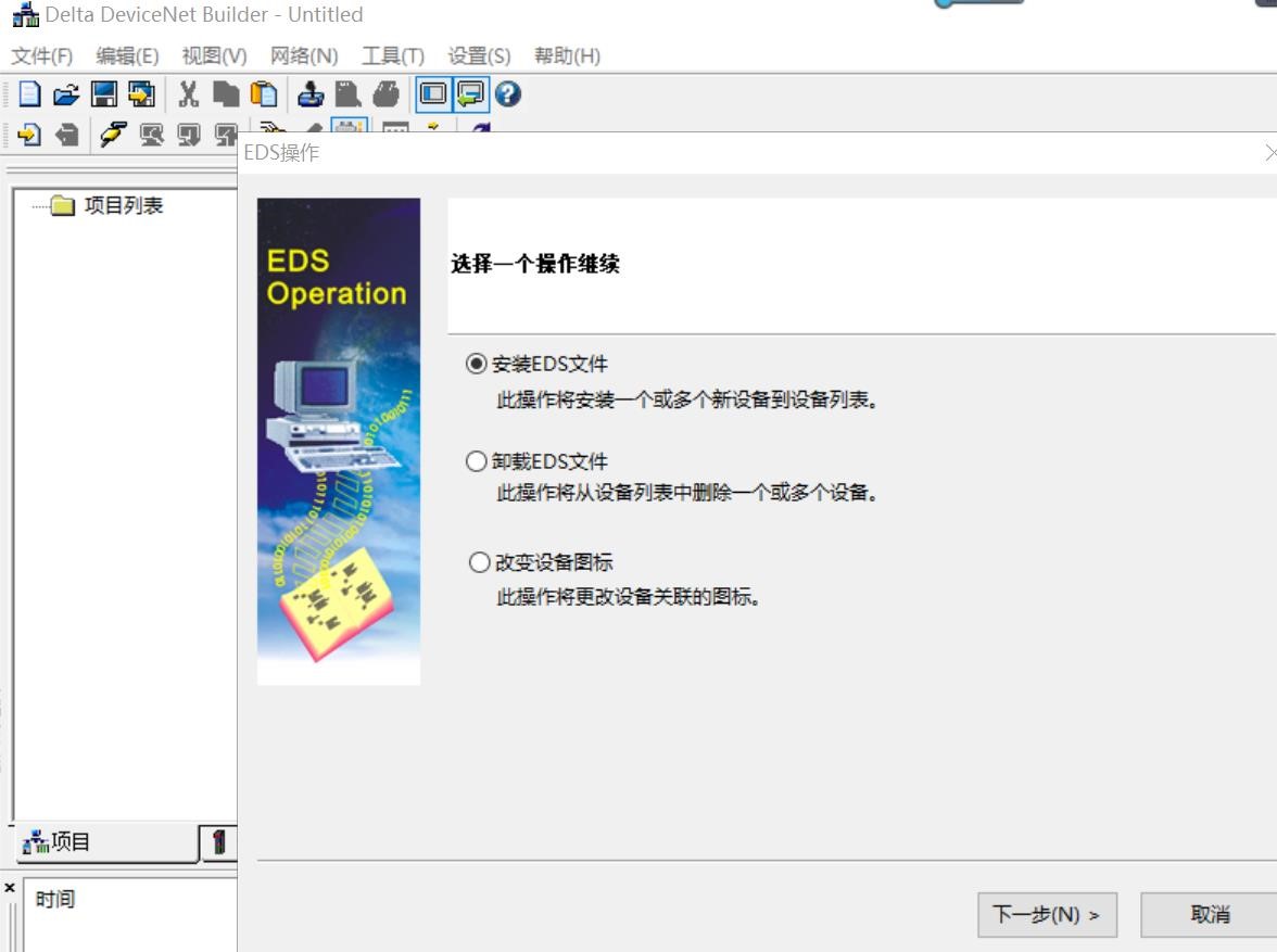 10, 把 EDS 文件导入 DeviceNet 配置软件 ,点击菜单栏工具/EDS 操作
