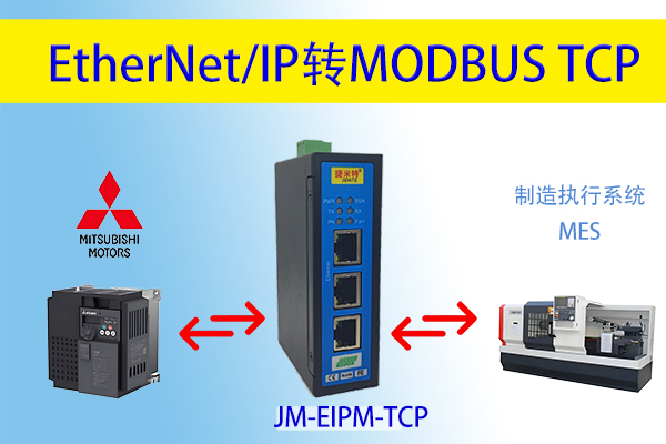 o 捷米特JM-EIPM-TCP网关:捷米特JM-EIPM-TCP协议转换模块具有两个独立的以太网接口,一个接口用于连接三菱变频器所在的 EtherNet/IP 网络,另一个接口则连接 MES 系统所在的 MODBUS TCP 网络。