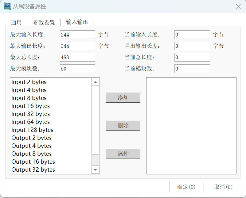 选中通讯子模块,点击“属性”,在模块属性中查看或者修改输入输出偏移参数,如下图所示;
