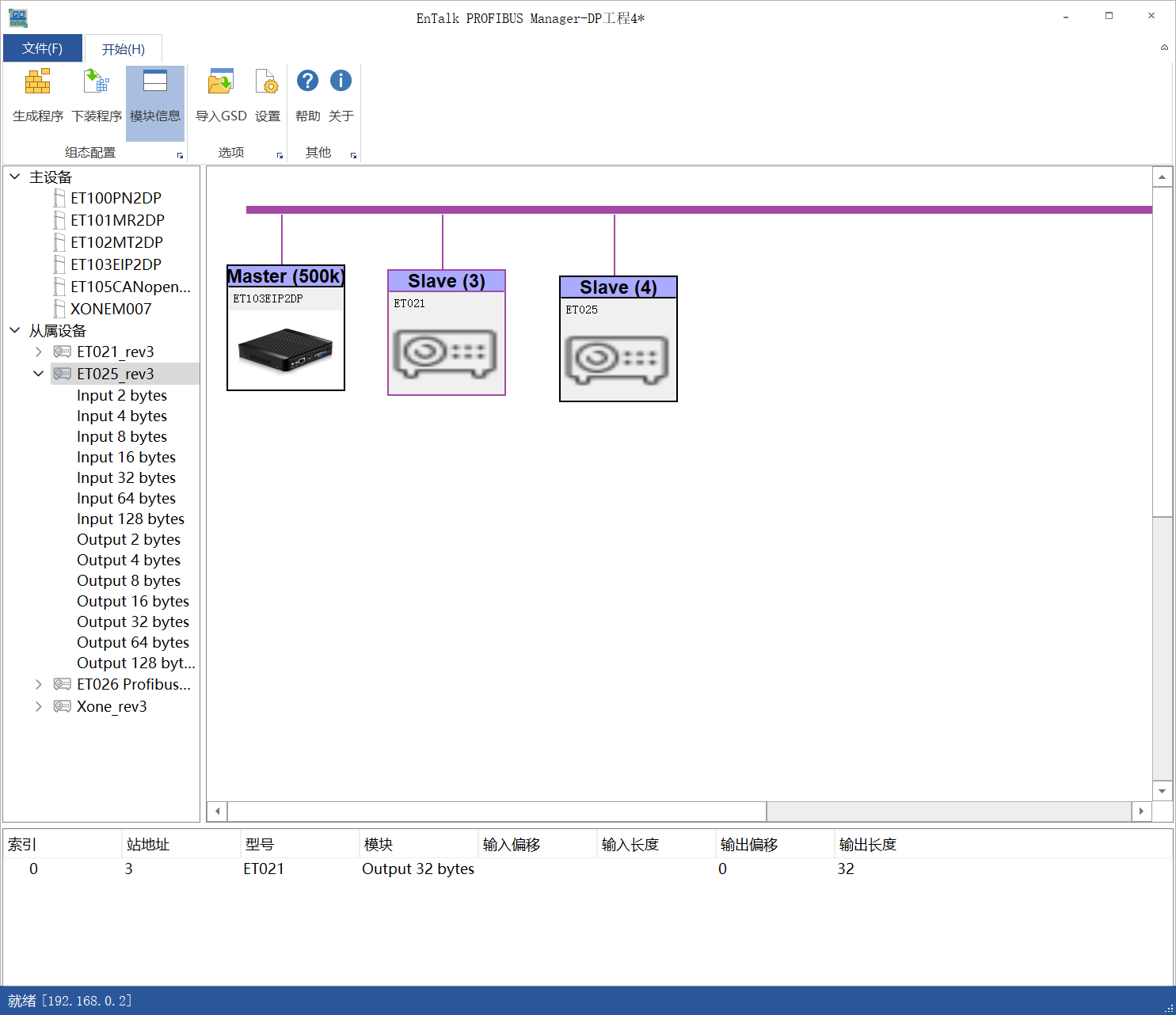 ET103EIP2DP添加成功并生成PROFIBUS总线网络,如下图所示;