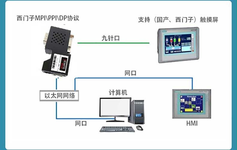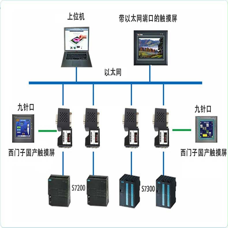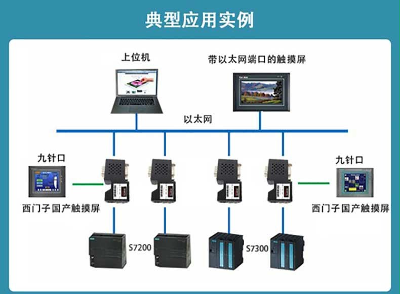 ETH-JM西门子系列模块支持和市面上主流的触摸屏以太网通讯,例如:西门子 KTP/TP 系列、西门子SmartIE 系列连 S7300、威纶通、步科、昆仑通态等。