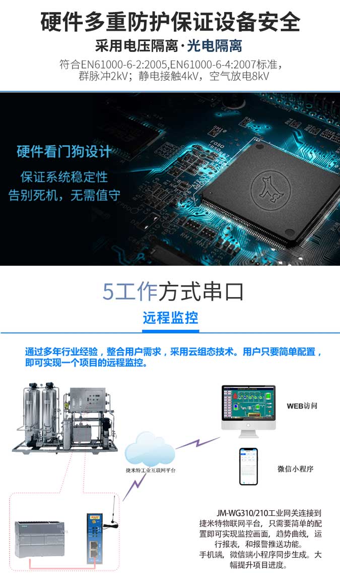 工业4G远程数据采集智能网关是一款基于4G网络的数据采集设备,可以实现远程数据采集、传输、存储和控制。它支持多种协议,可以与各种工业设备进行通讯。同时,它还支持多种数据采集方式,如定时采集、实时采集、定时上传等,可以满足不同的行业需求。除此之外,它还具有智能分析功能,可以对采集到的数据进行预处理和报警,大大提高了管理效率。工业4G远程数据采集智能网关不仅可以提高设备的自动化程度,还可以实现远程监控和管理,为工业生产带来了巨大的便利。
